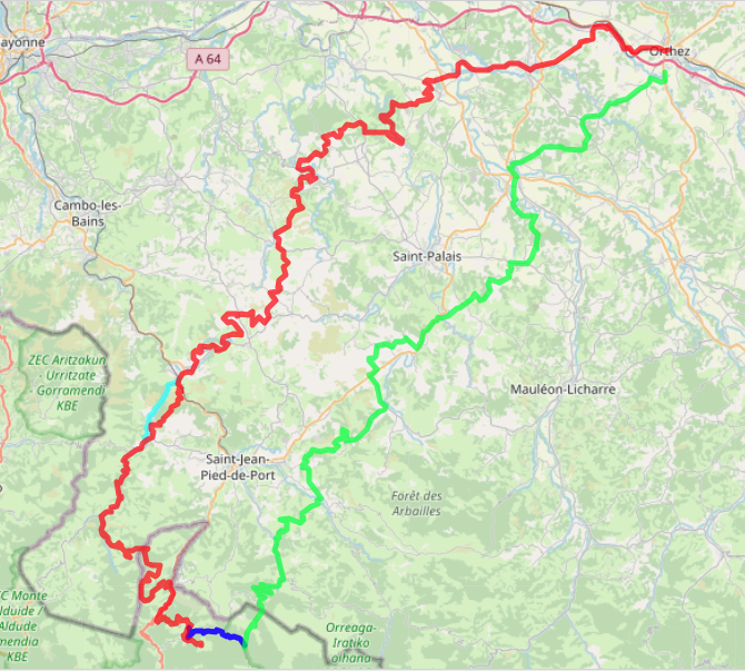 Départ d’Orthez, direction Salies de Béarn en passant par des chemins terre / route via St Palais et Banca.